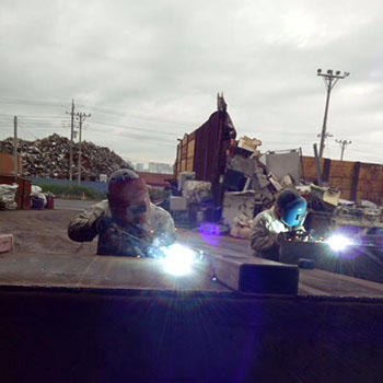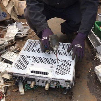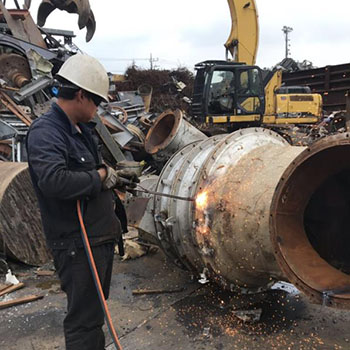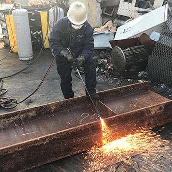 機械切断のできない品目はガスバーナーで切断しながら解体を行います。