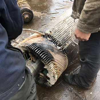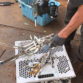 機械切断のできない品目はガスバーナーで切断しながら解体を行います。